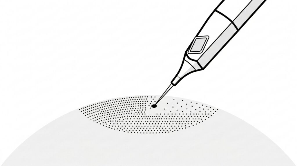 SMP skapas genom tusentals mikroskopiska pigmentpunkter som efterliknar hårsäckar. Punkterna appliceras för hand i exakt djup och byggs upp i flera sessioner för att skapa en naturlig illusion av täthet – helt utan kirurgi.